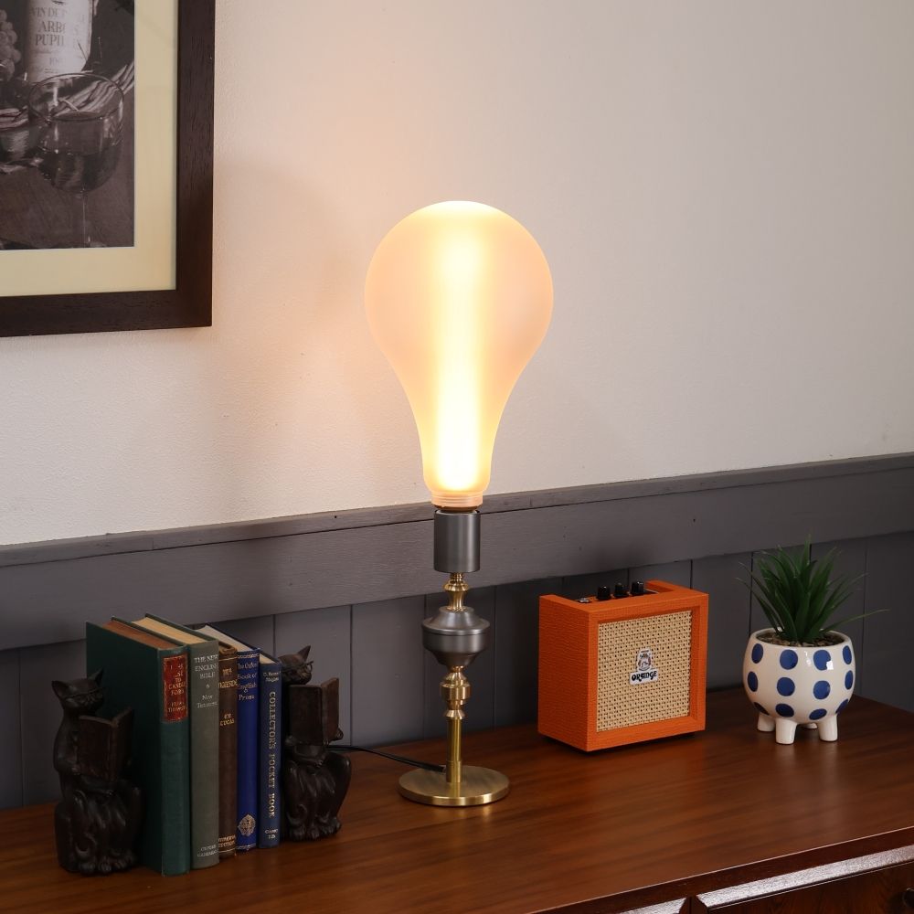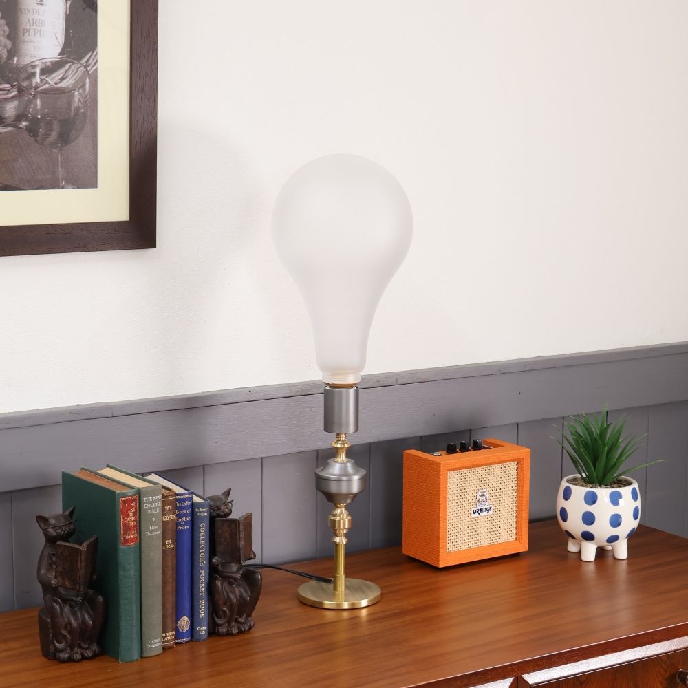 また、大きめサイズならではの存在感があり、シェードを付けずに使っても、灯りそのものがインテリアとして成立する佇まいも魅力のひとつ。