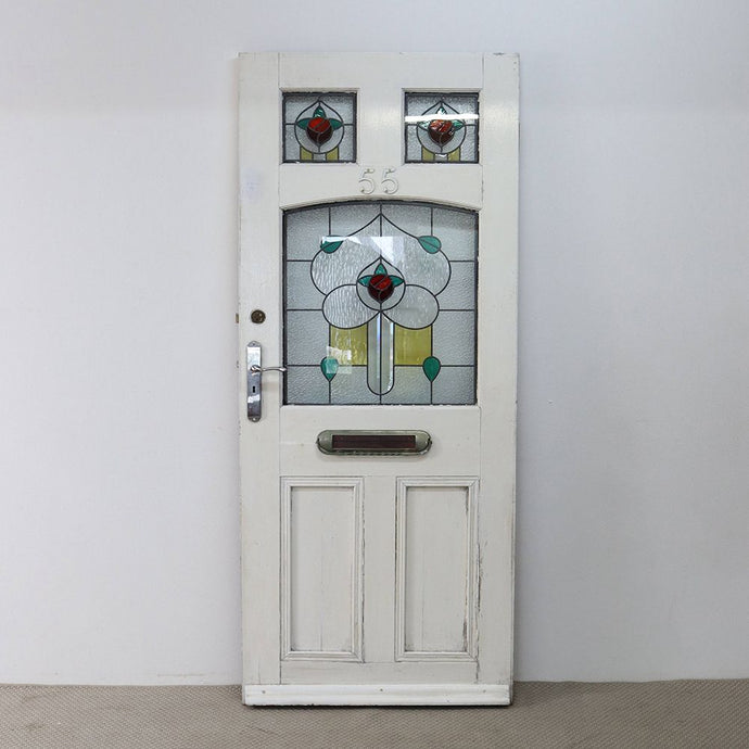 3つの花がアクセントになった英国アンティークのステンドグラスドア VC110-088