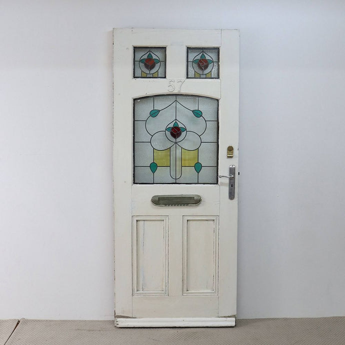 3つの花が印象的なアンティークステンドグラスドア VC110-089