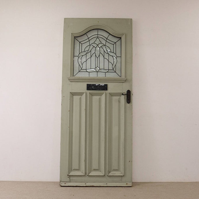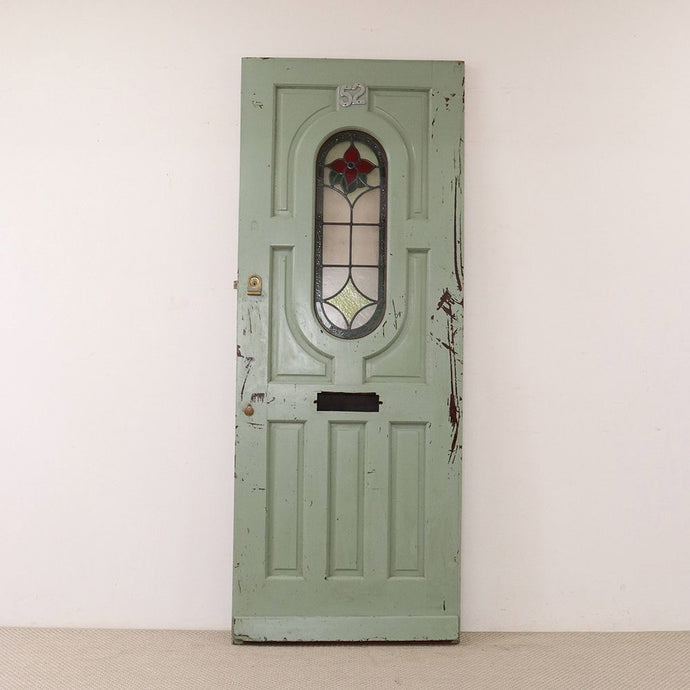 グリーンペイントに赤花が映える英国アンティークステンドグラスドア VC110-109