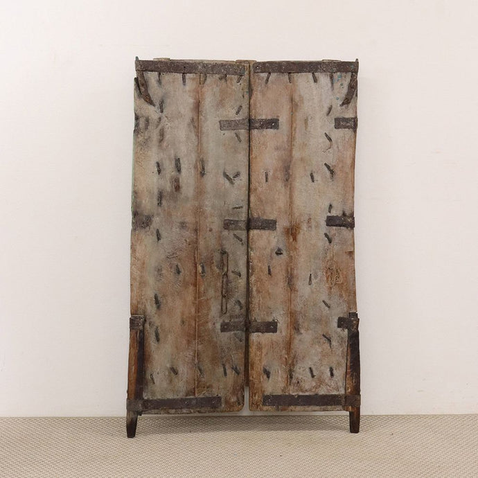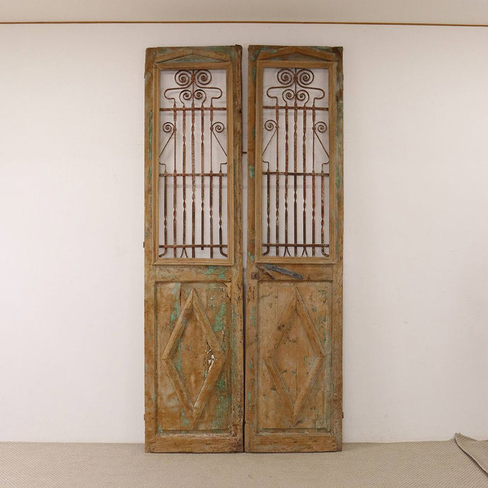 シャビ―な木肌とアイアン格子がカッコいいアンティークアイアンペアドア VC112-069001