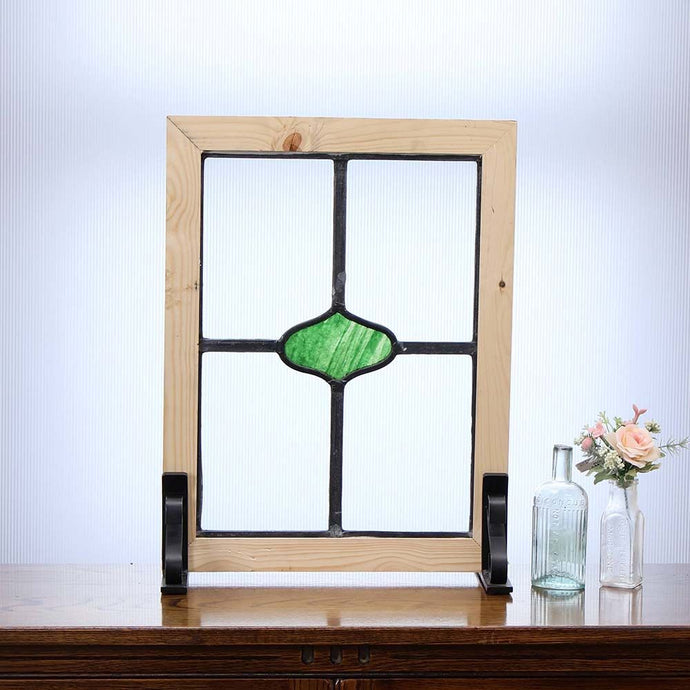 シンプルなグリーンモチーフの英国アンティークステンドグラス VC114-257002