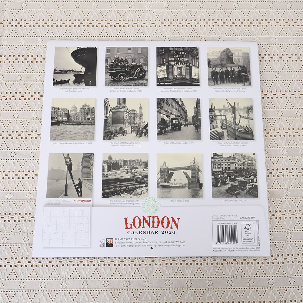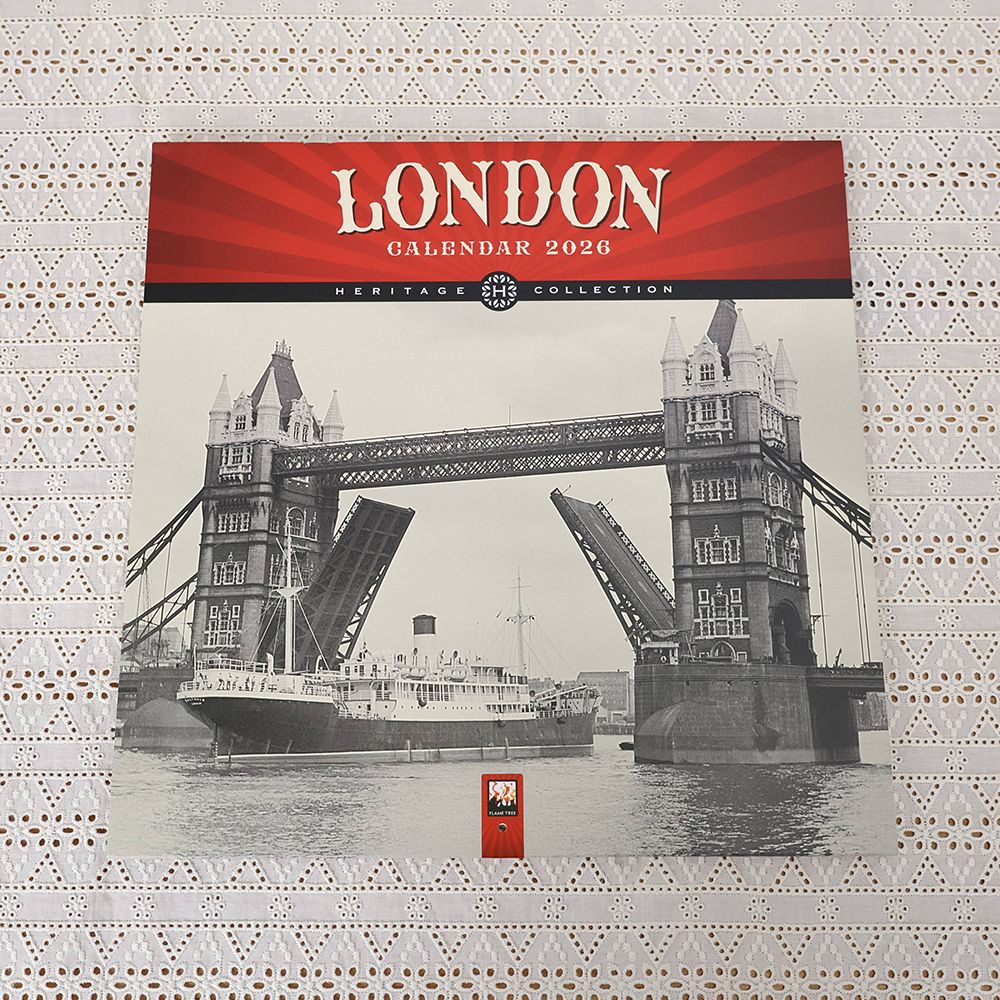 歴史の一瞬を切り取ったような、静かで重厚な佇まいが印象的な表紙です。ロンドン ヘリテージカレンダー2026は、ロンドンの名所がヴィンテージ調の写真で毎月登場。