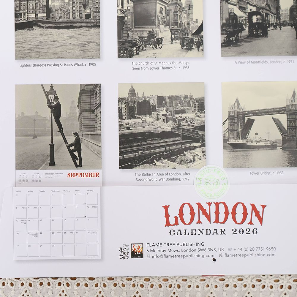 テムズ川の船着場、開かれたタワーブリッジやクラシックカーなど、このカレンダーは、まるで時間旅行のアルバムのよう。