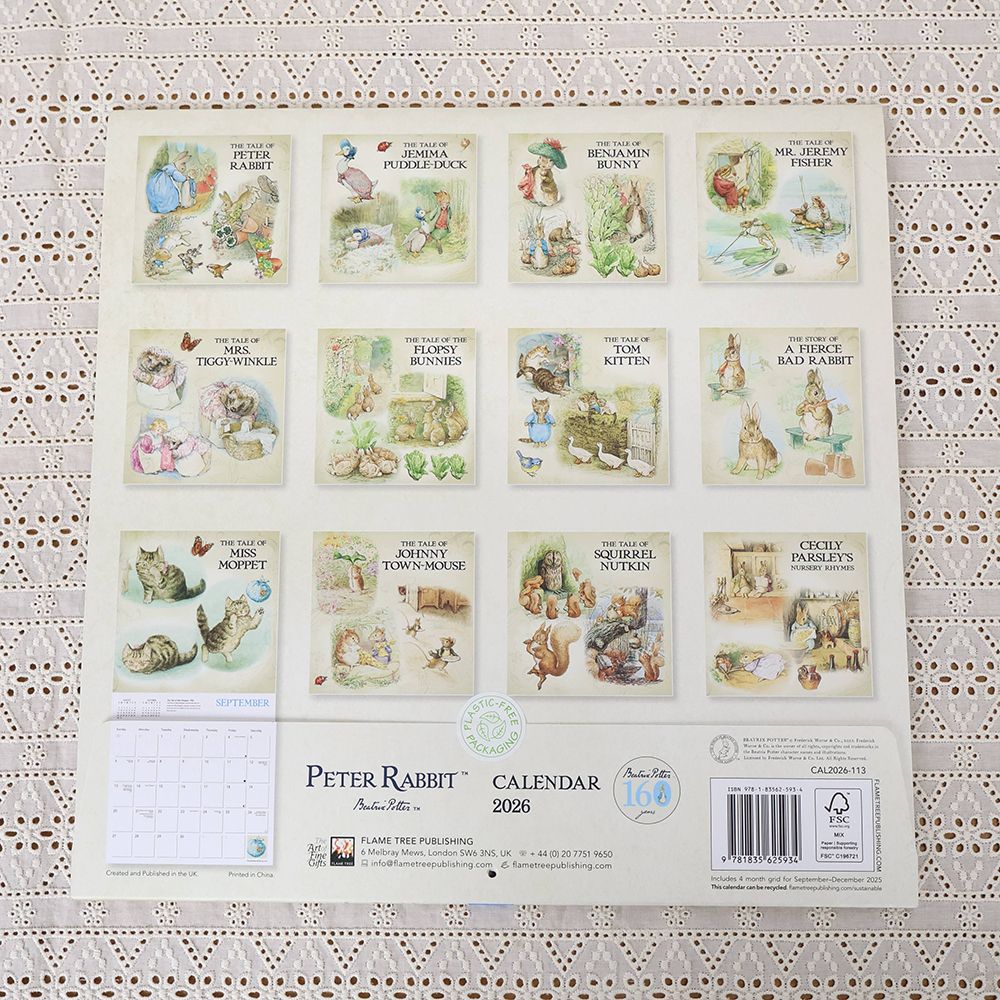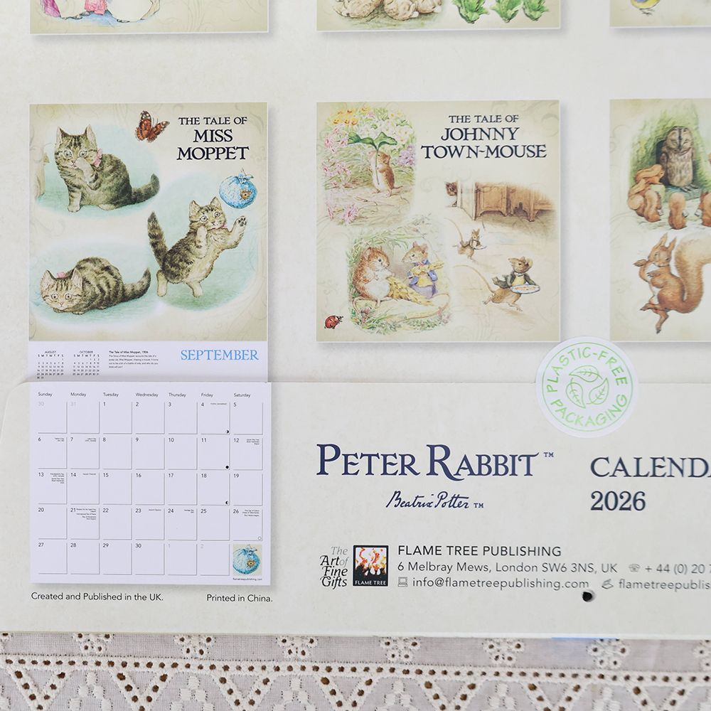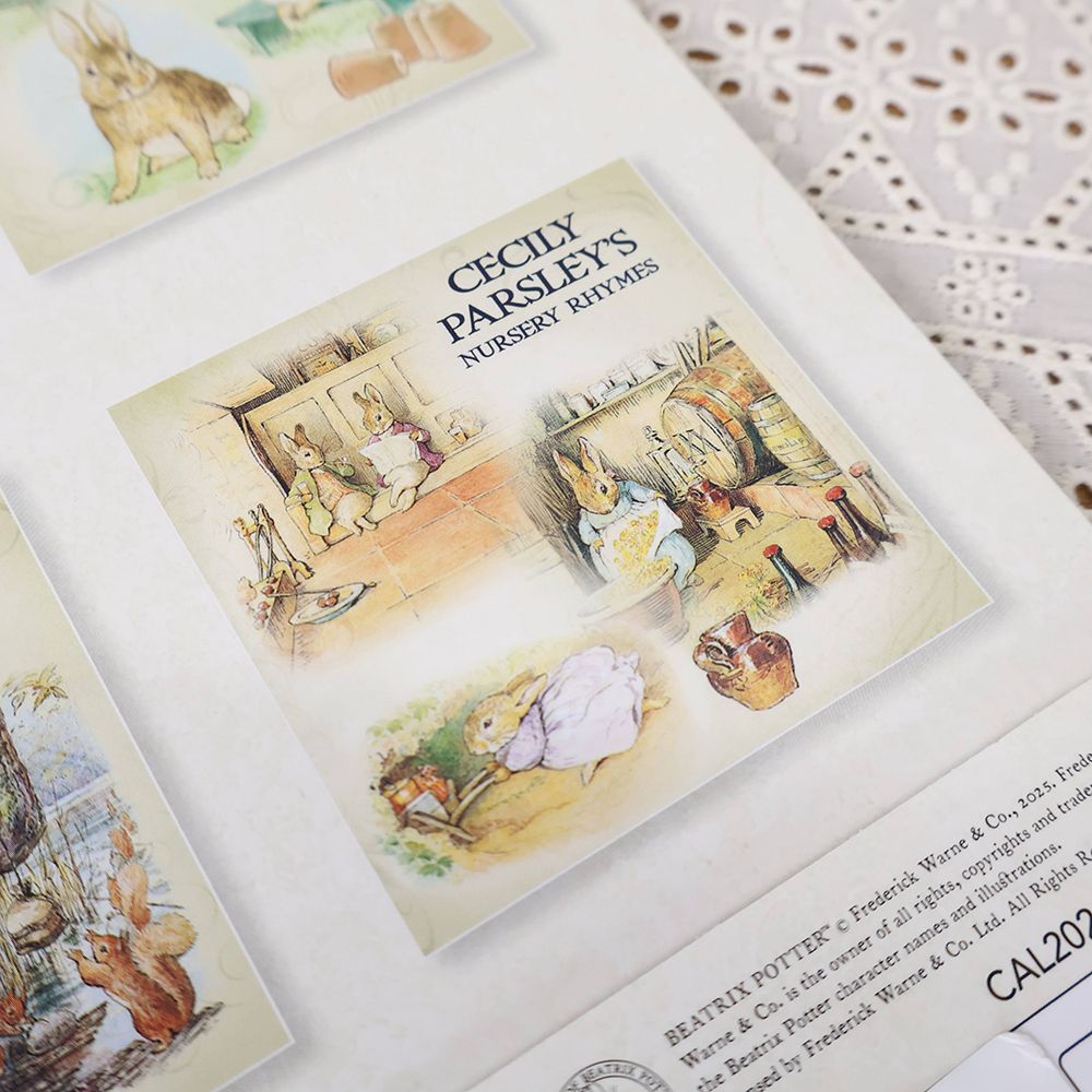 ピーターラビットカレンダー2026はページをめくるたびに、愛らしい動物たちの暮らしが現れます。