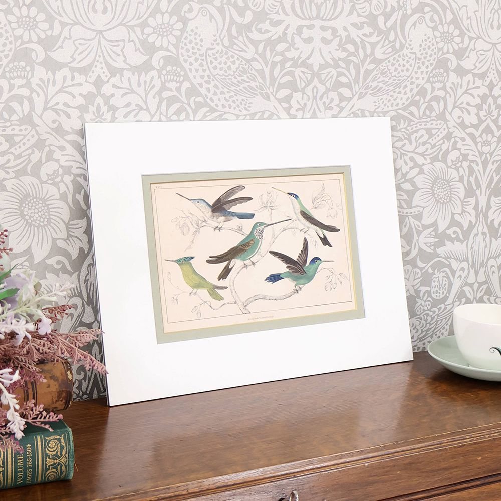 綺麗な小鳥が描かれた銅版画は、イギリス・ロンドンで刊行された図版「大地と生物の自然史」に使われた1枚。