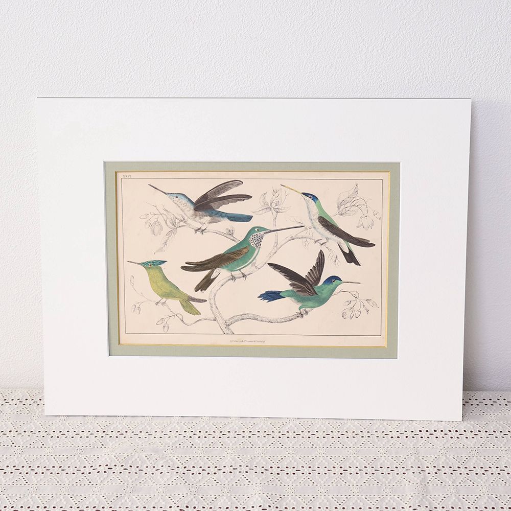 手彩色の銅版画です♪ ハチドリ/大地と生物の自然史 OC1-016