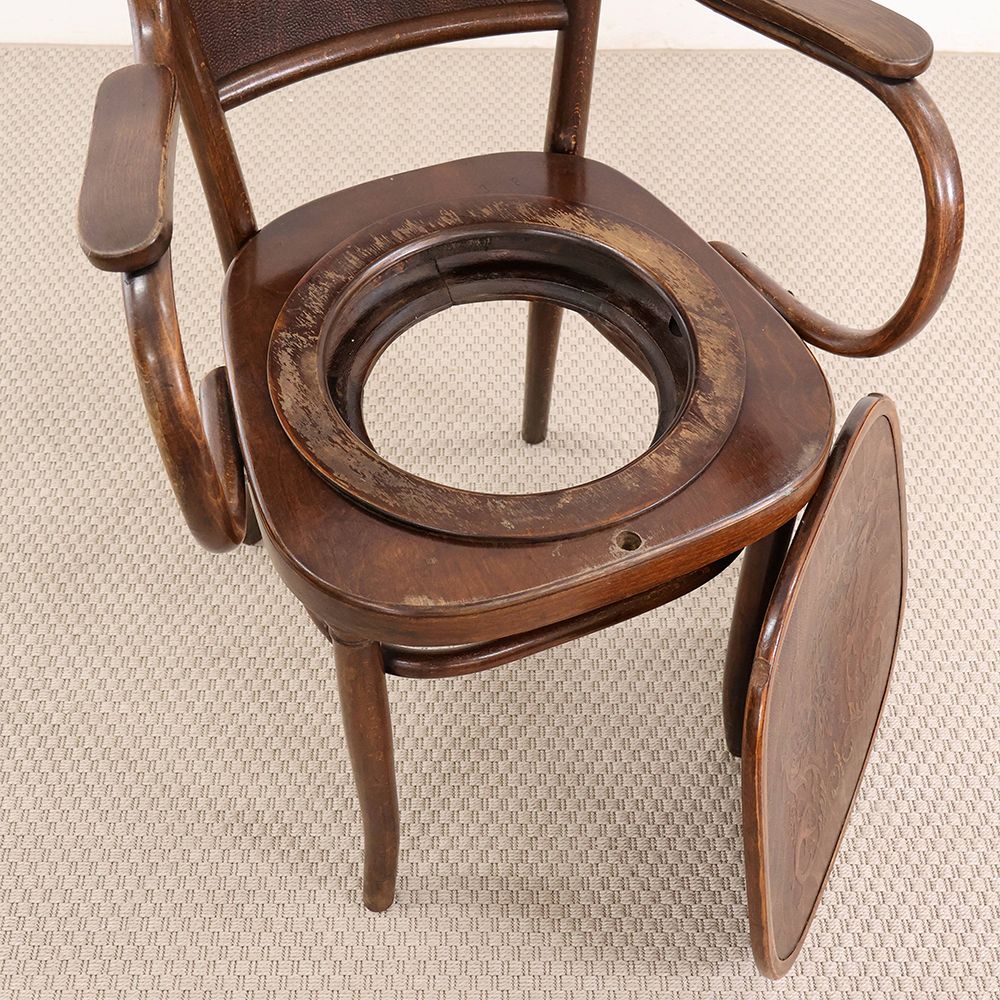 このチェアが作られた1900年代は、ロンドンなどの大都市で下水道・水洗トイレの整備が始まった時代。衛生への関心も一般に広まり始めましたが、まだ「おまる(チャンバーポット)」を使用する家も多かったそう。また、病院や介護などで必要となることもあったでしょう。