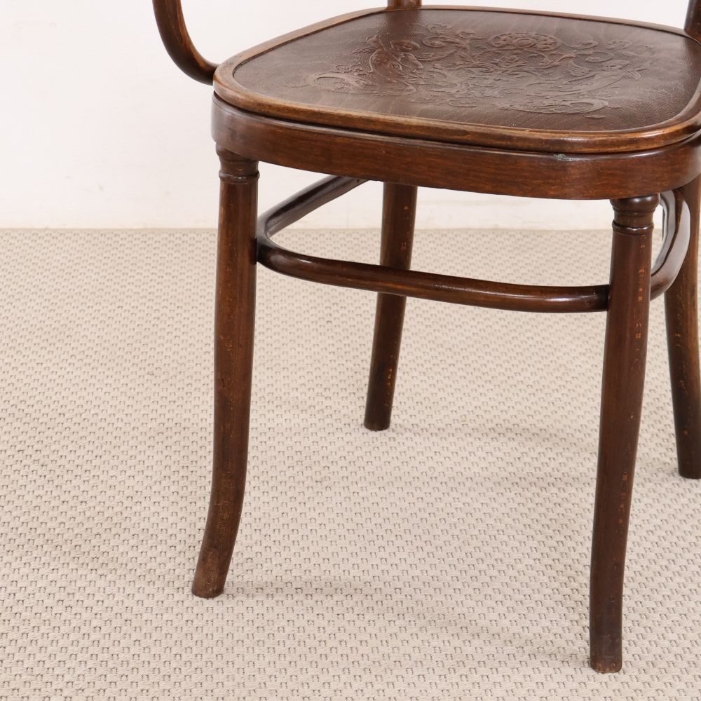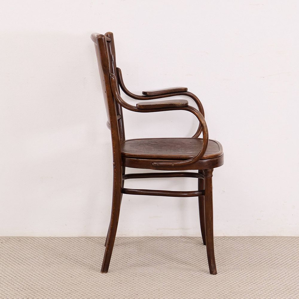 曲木で有名なベントウッドチェアとはいえ、この椅子は左右のアームもそれぞれ1本の木をグイグイと大胆に曲げて形作られていて、すごいなぁと感心してしまうのです。
