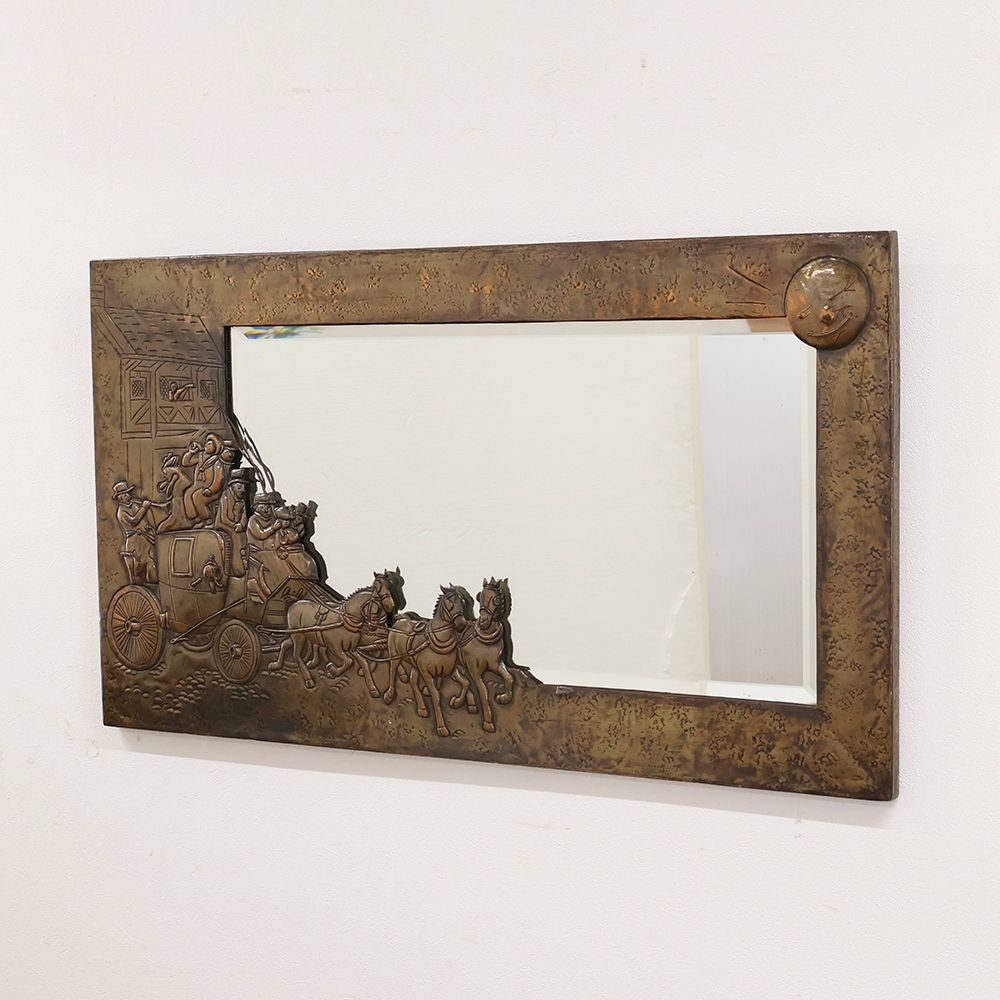 壁に掛けるだけでインパクトは抜群。賑やかで騒がしい様子も楽しい、ユニークなアンティーク・ウォールミラーです。